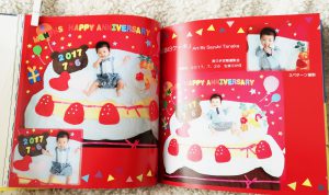 お昼寝アート自体がすでにデコっているので、フォトブックでたくさんイラストをいれたりする必要はないですね。写真を配置するだけで華やか。